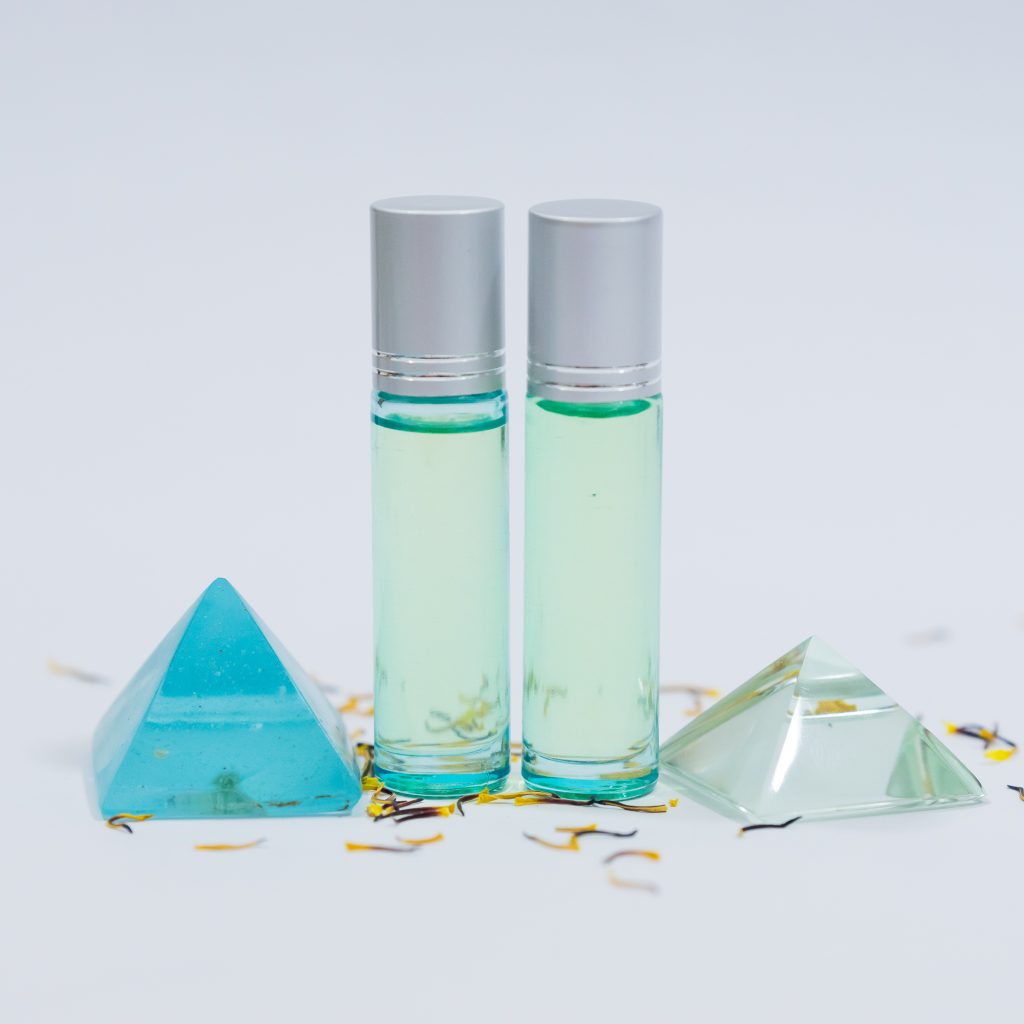 A Türkiz Olajban a mirha – ez volt az az illat, melyet Hathor Templomaiban elsődlegesen Hathornak ajánlottak – rózsa, lótusz és jázmin olajok illata egyesül. Az olaj a Új Kapcsolódási Mintákra nyit teret bennünk.